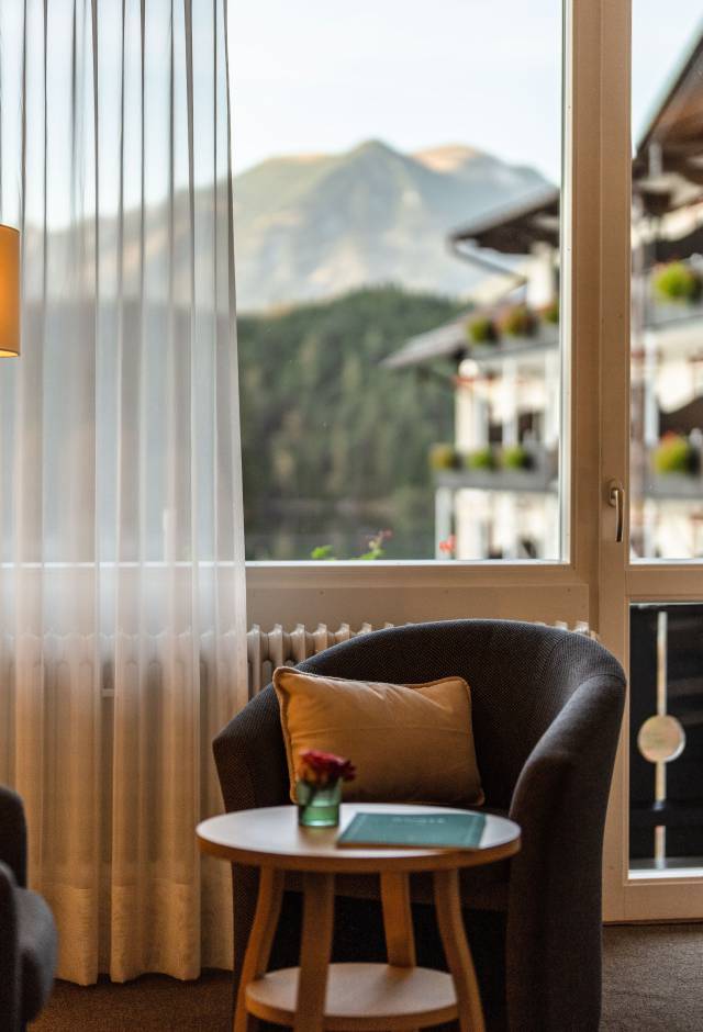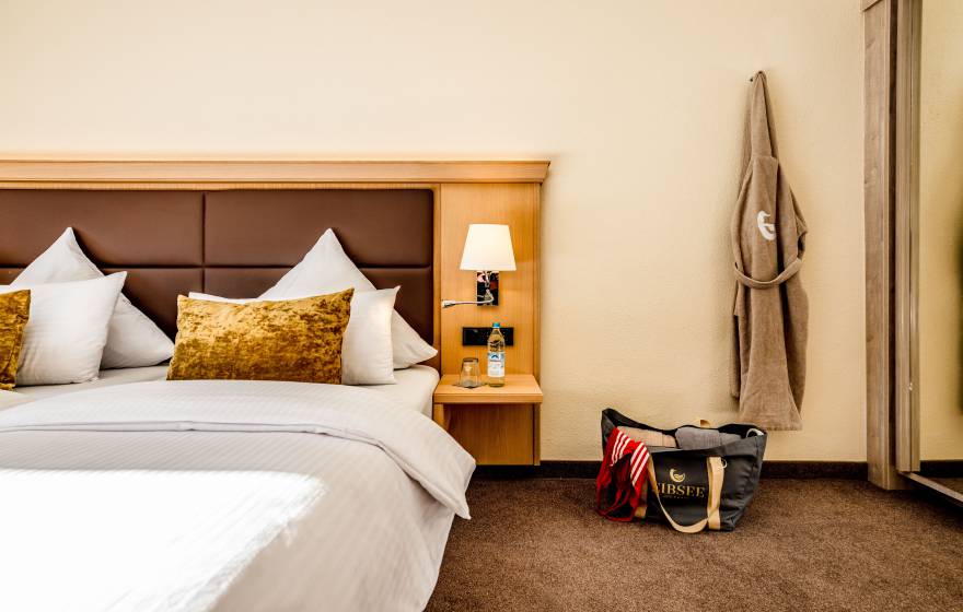 Das Spiegeln der Bergwelt im klaren Wasser des Eibsees. Die Aussicht von den Terrassen, vom Wellnessbereich, vom Hotelstrand … Überall ergeben sich wunderschöne Fotomotive von der unvergleichlichen Urlaubswelt am Eibsee.