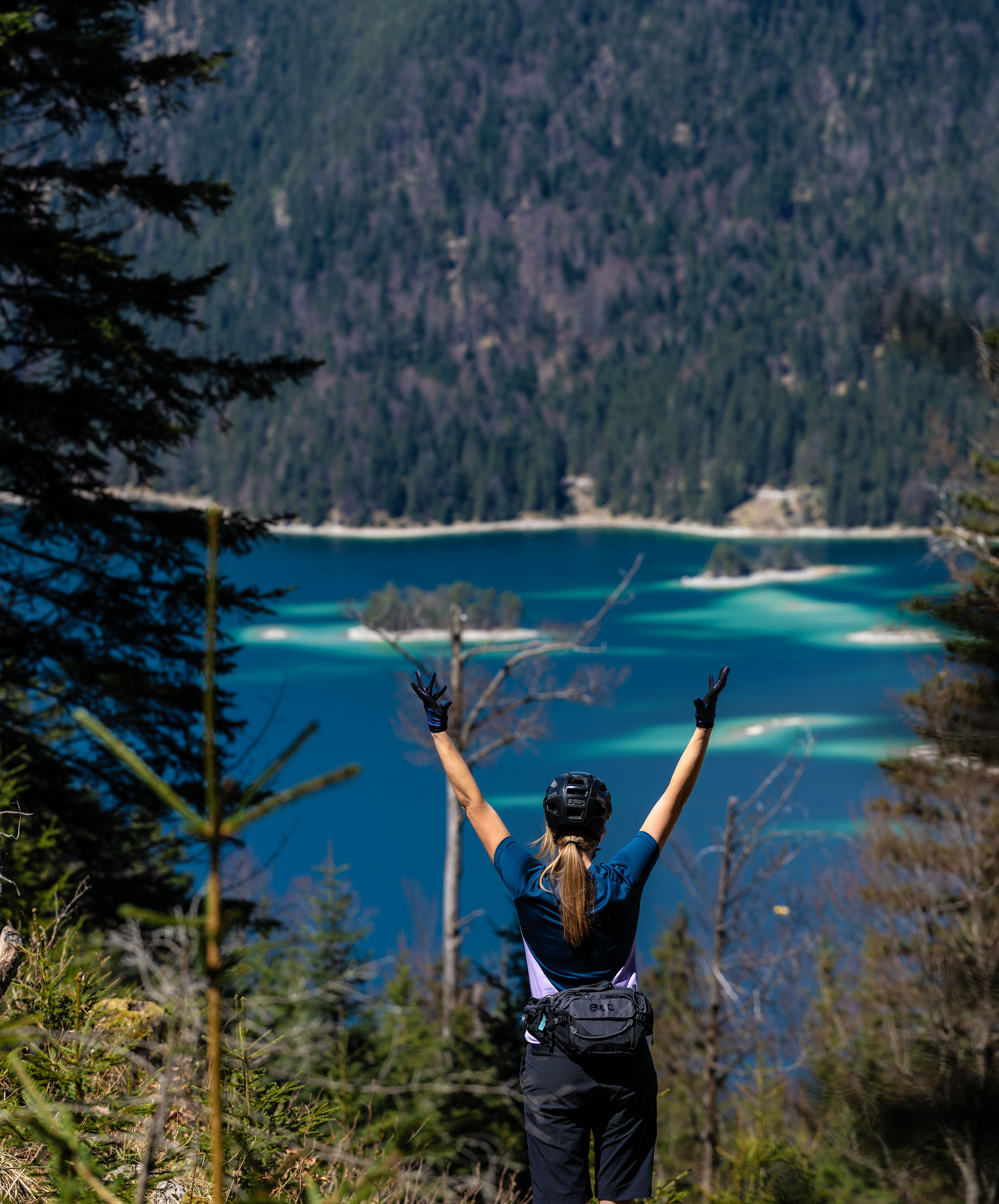- Abfahrt: Wählen Sie zwischen dem gleichen Rückweg oder dem nervenaufreibenden Singletrail, der Sie hinunter zum Eibsee bringt.