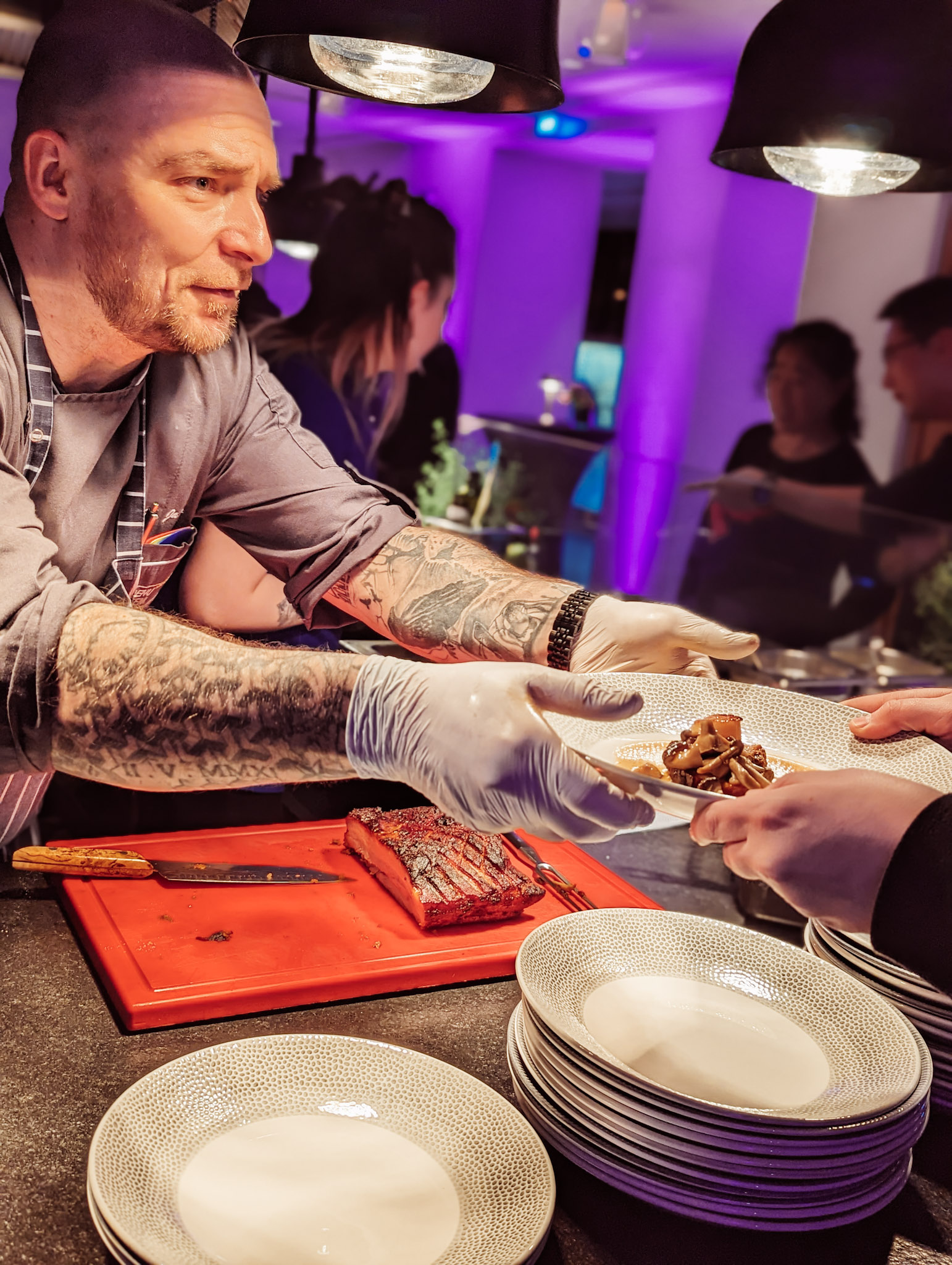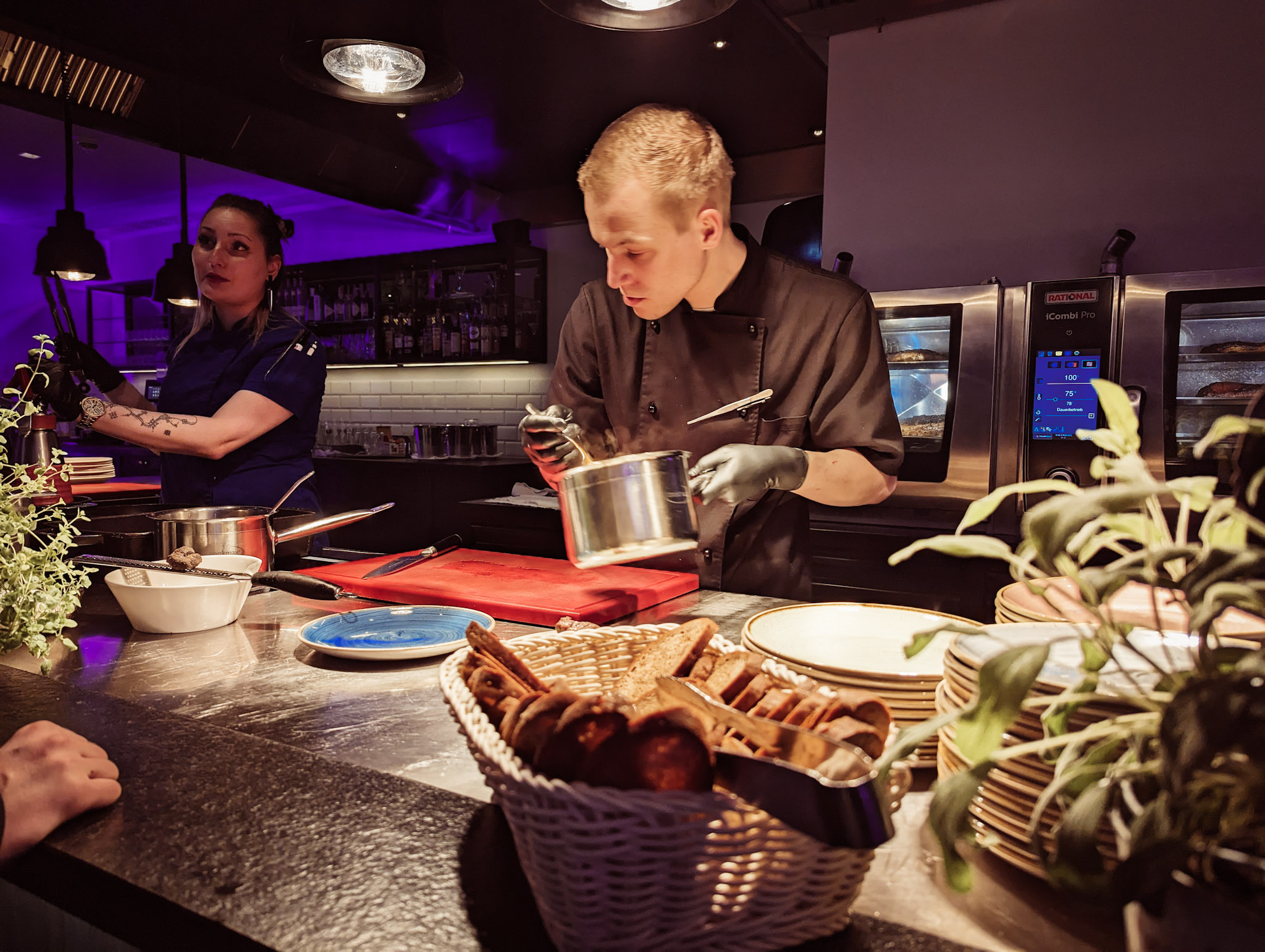 Das Team der Küche zaubert Speisen mit einer Prise Entertainment und mischt sich unter die Gäste. Freuen Sie sich auf spontane Kochdemos und Einlagen, die Ihnen ein Lächeln ins Gesicht zaubern werden. Schauen Sie unseren Küchenprofis über die Schultern und erhalten Sie einen spannenden Blick hinter die Kulissen.
