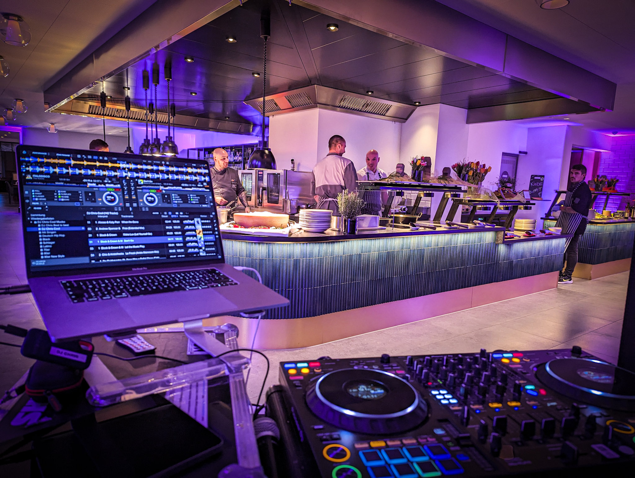 Die Küchenparty im Eibsee Hotel swingt im Einklang mit den Beats unseres DJs – von chilliger Lounge-Musik, zum Ankommen und Einstimmen, hin zu mitreißenden Beats die die Stimmung anheizen.. Es ist dieser Soundtrack, der zusammen mit den kulinarischen Kreationen eine gelungene Atmosphäre schafft – perfekt, um sich dem Rhythmus der kulinarischen Freuden hinzugeben.